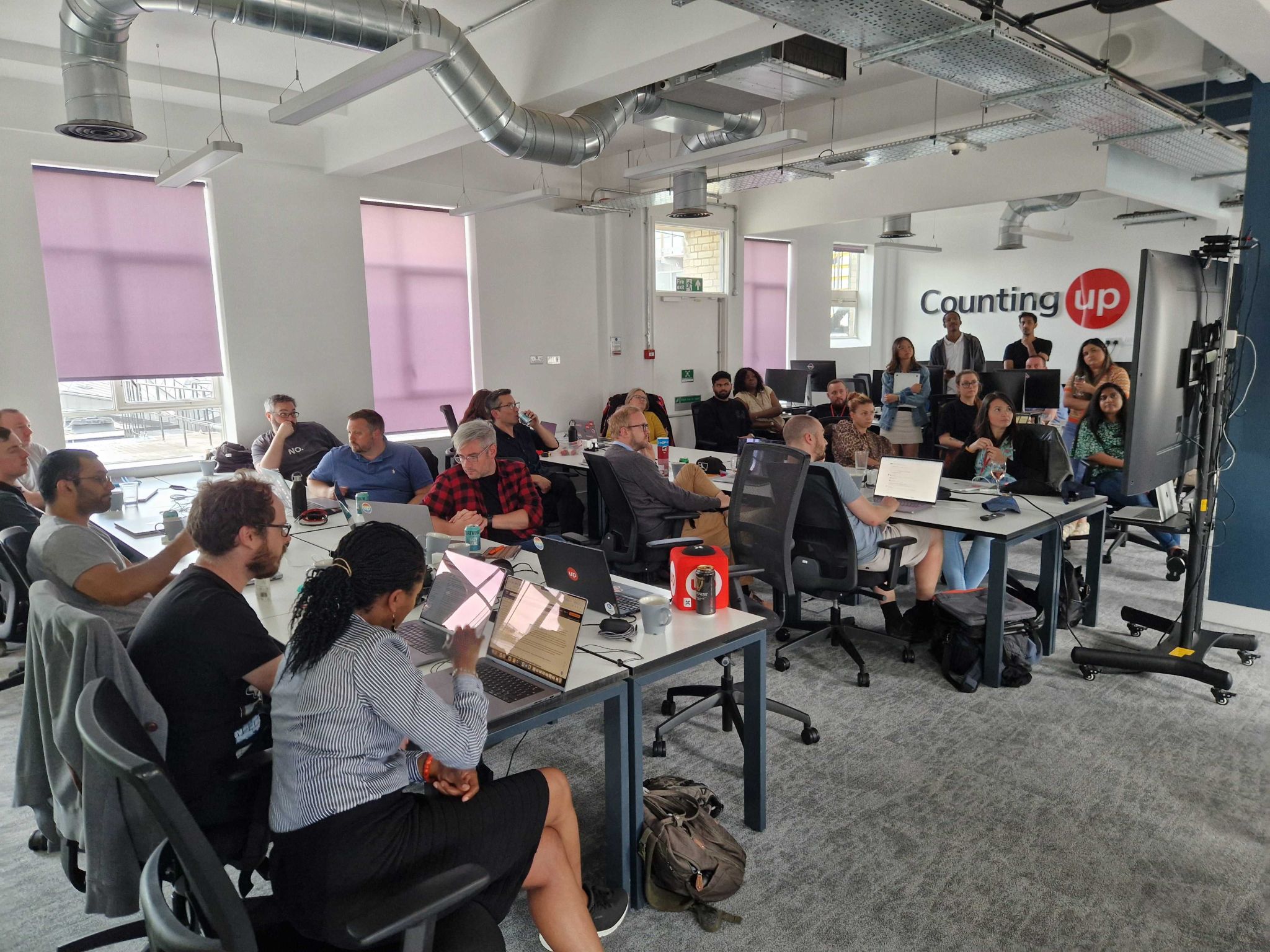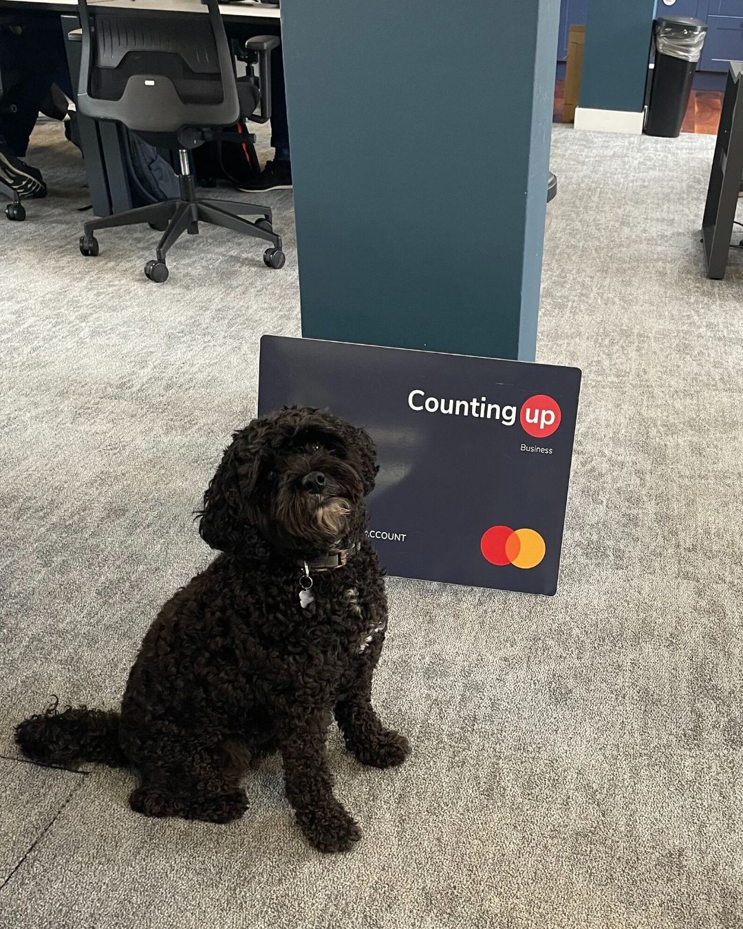 Countingup team with logo behind in office