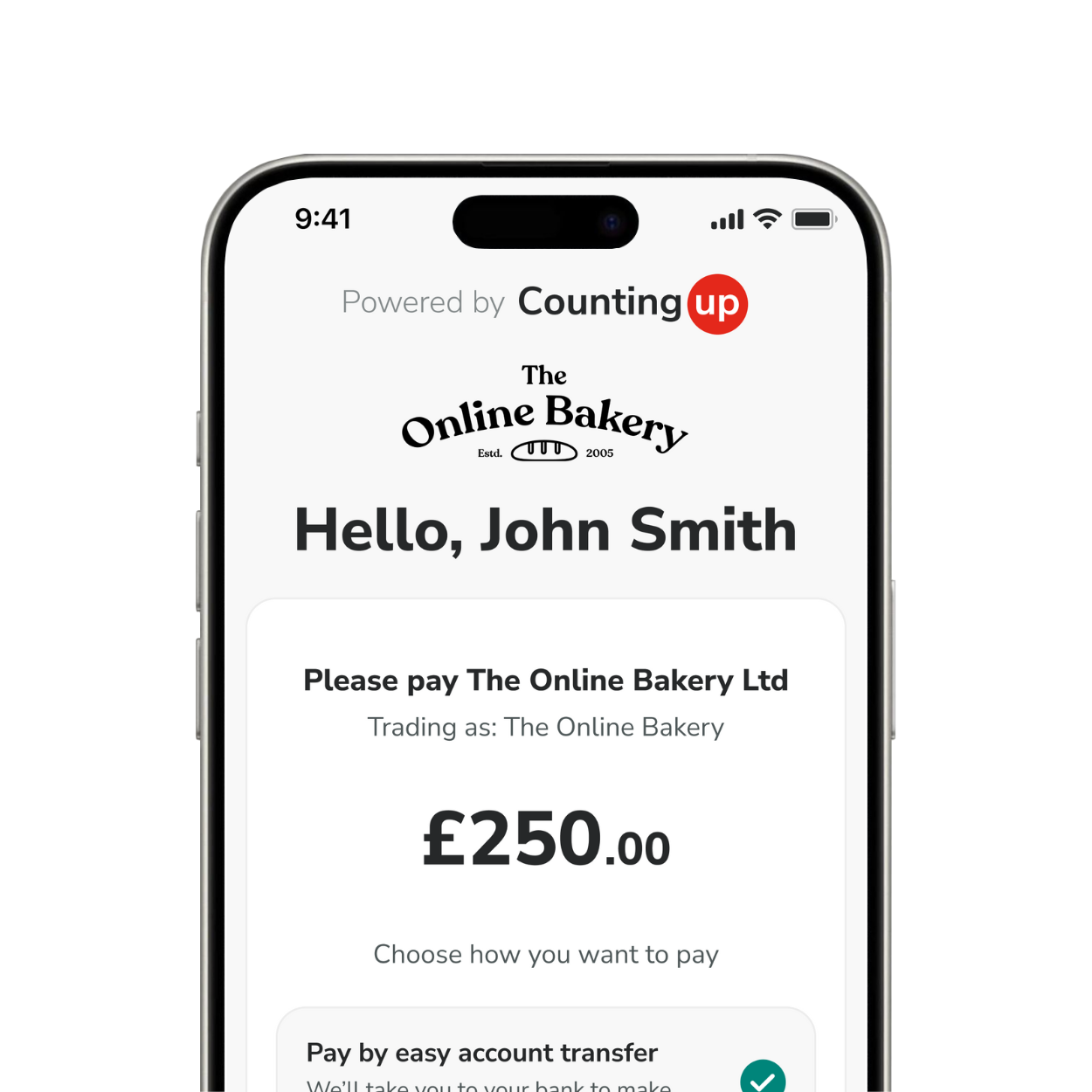 No need to hang around, with Countingup you can accept payments by account transfer, invoice, payment link and card from day one.